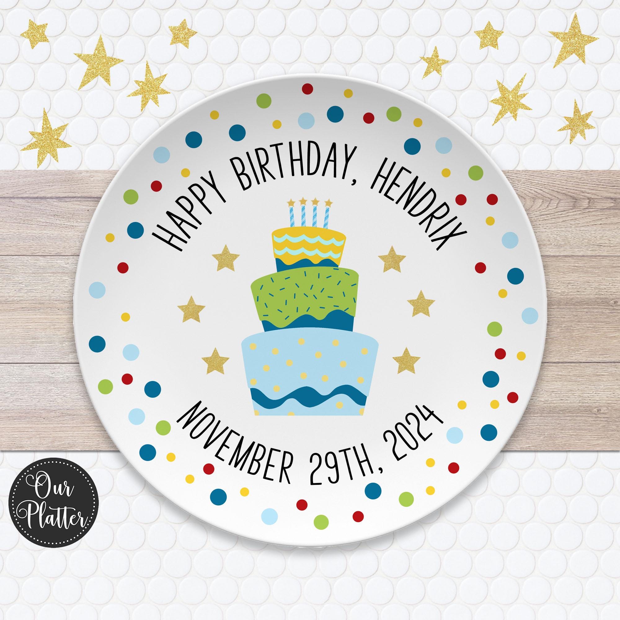 Happy Birthday Personalized Plate | Dots, Sprinkles, Cake Design | Custom Colors