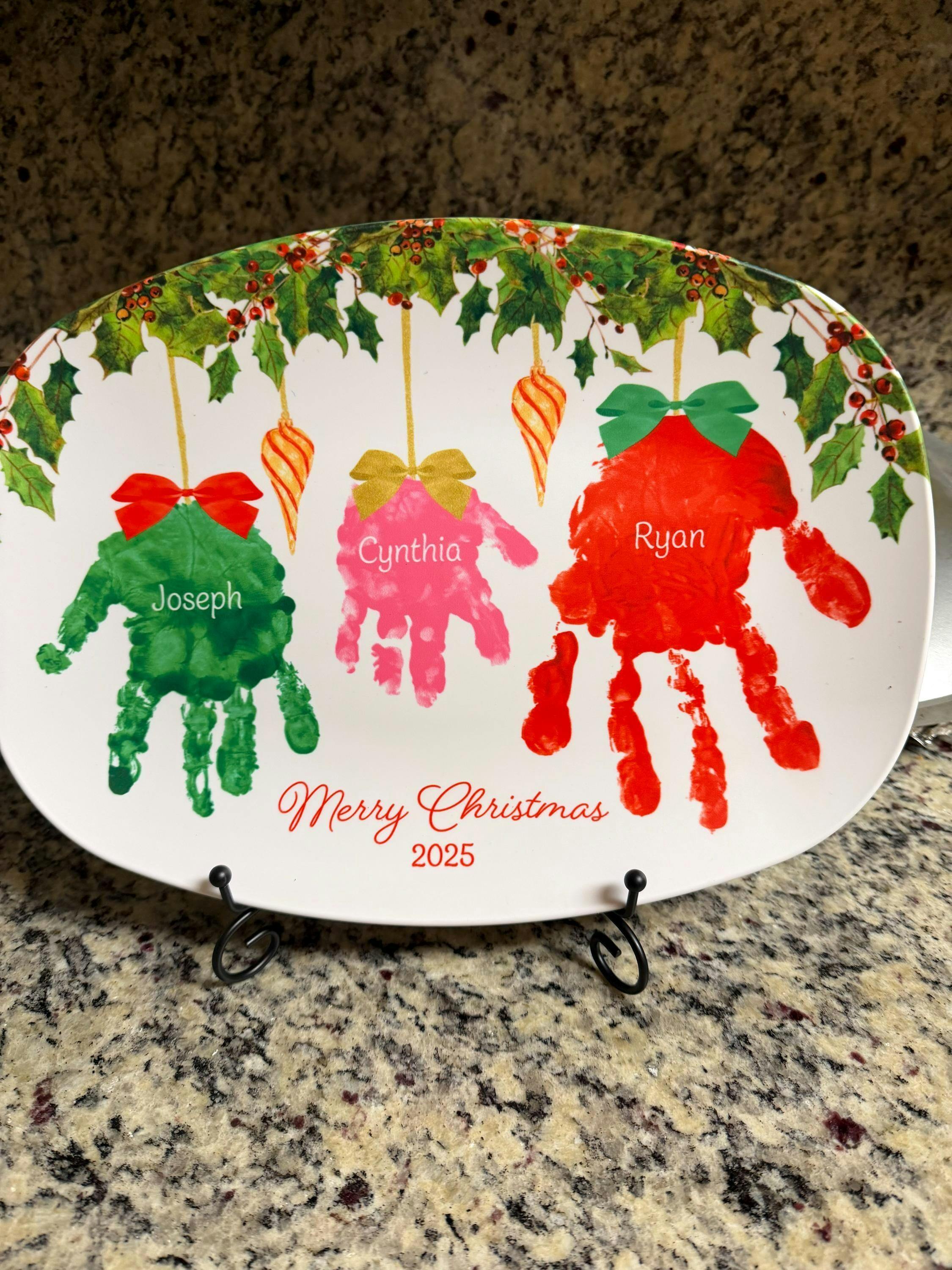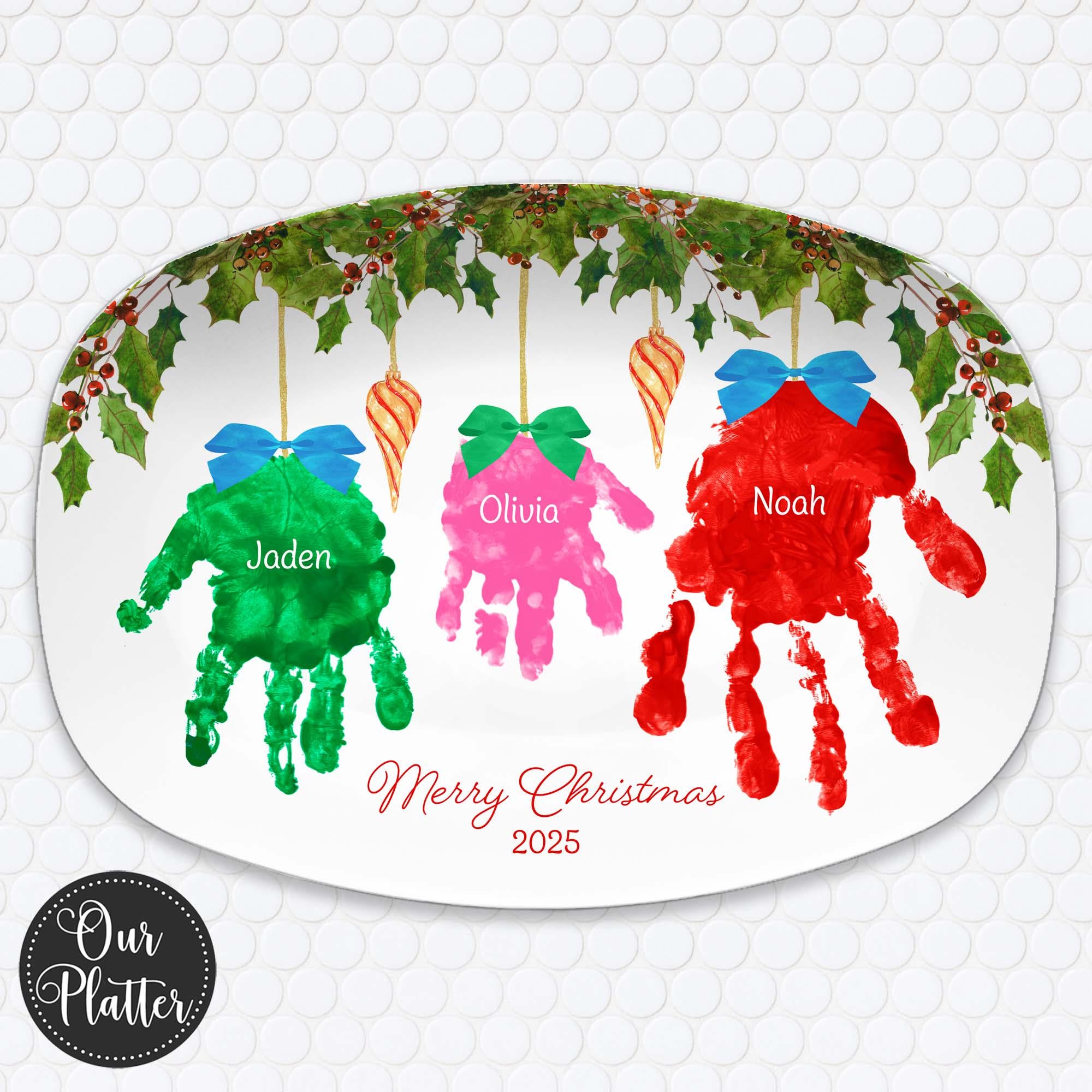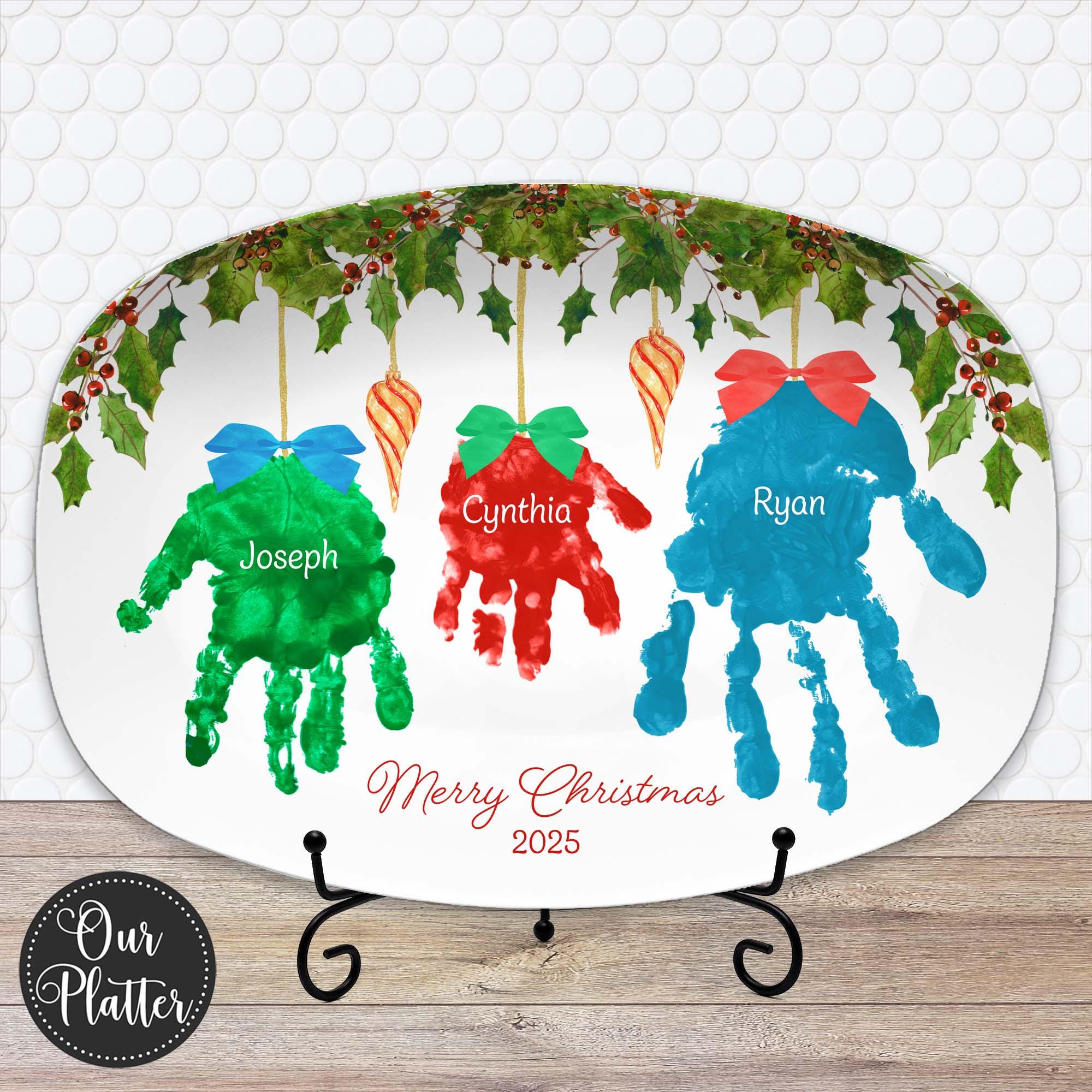 Handprint Ornaments Custom Personalized Platter, Gift from Kids, Handprint Plate
