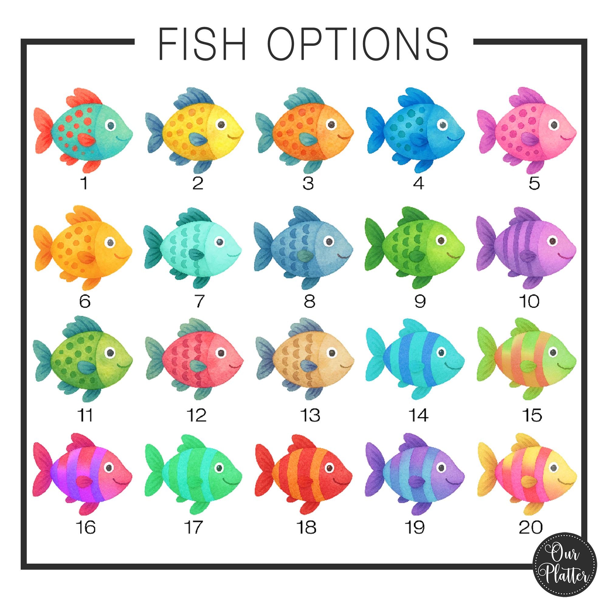 Celebrate your favorite fisherman's love and his (or her) favorite little "catches" with this beautiful personalized platter! Featuring vibrant fish for each grandchild, surrounded by a soft plant border, this platter makes a heartwarming keepsake for Father's Day, Christmas, birthdays, or just because.