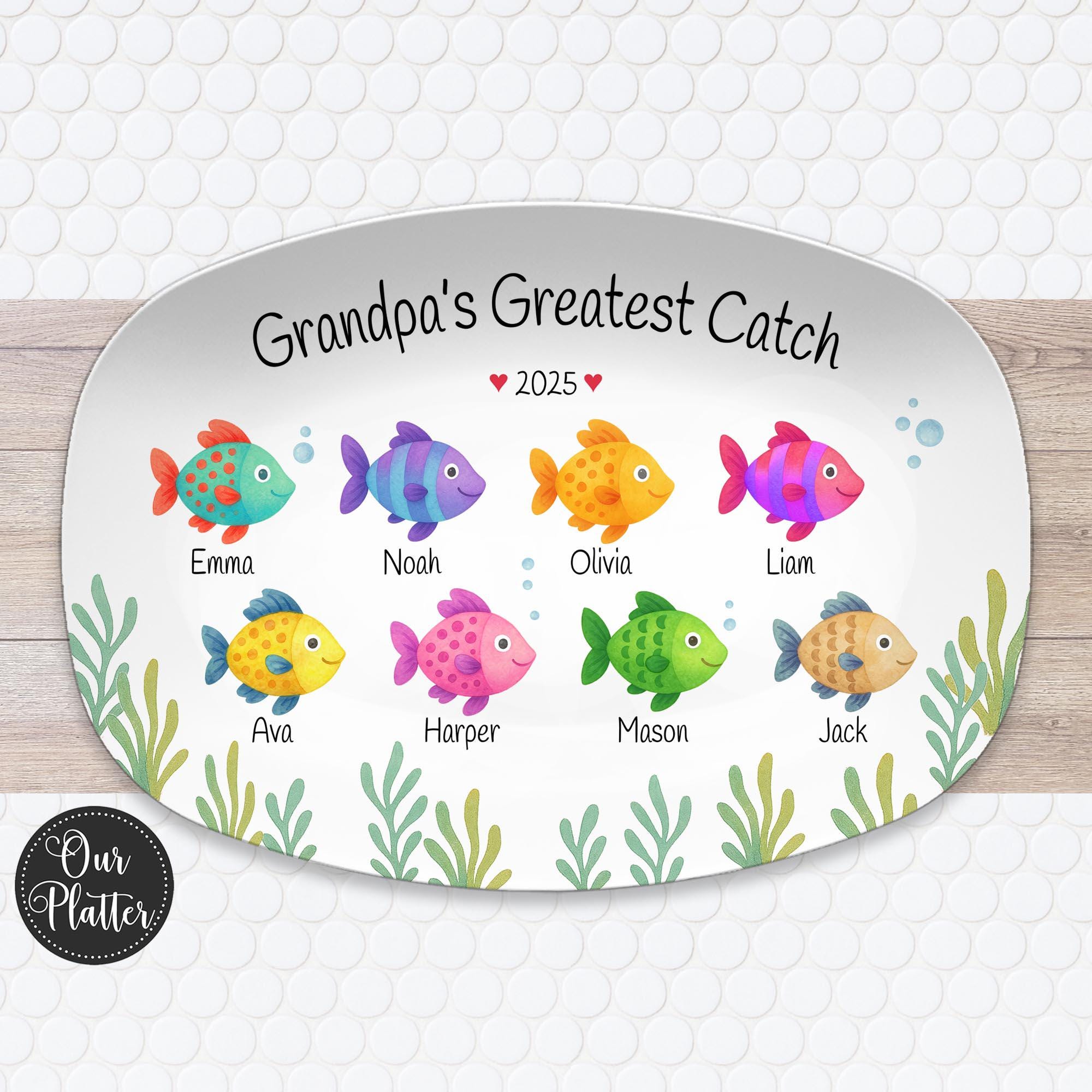 Personalized Greatest Catch Platter | Custom Colorful Fish Design | Grandkids Names