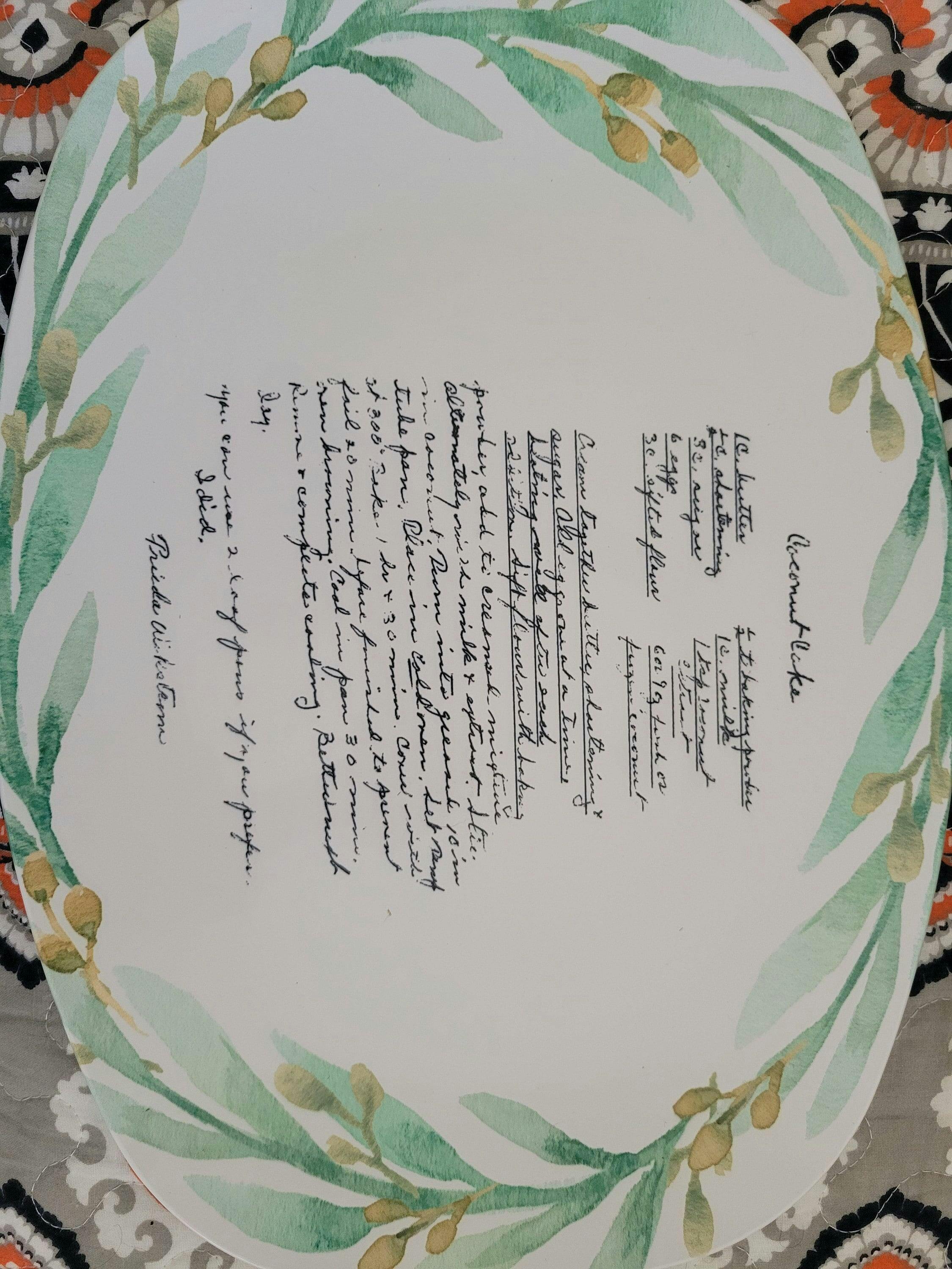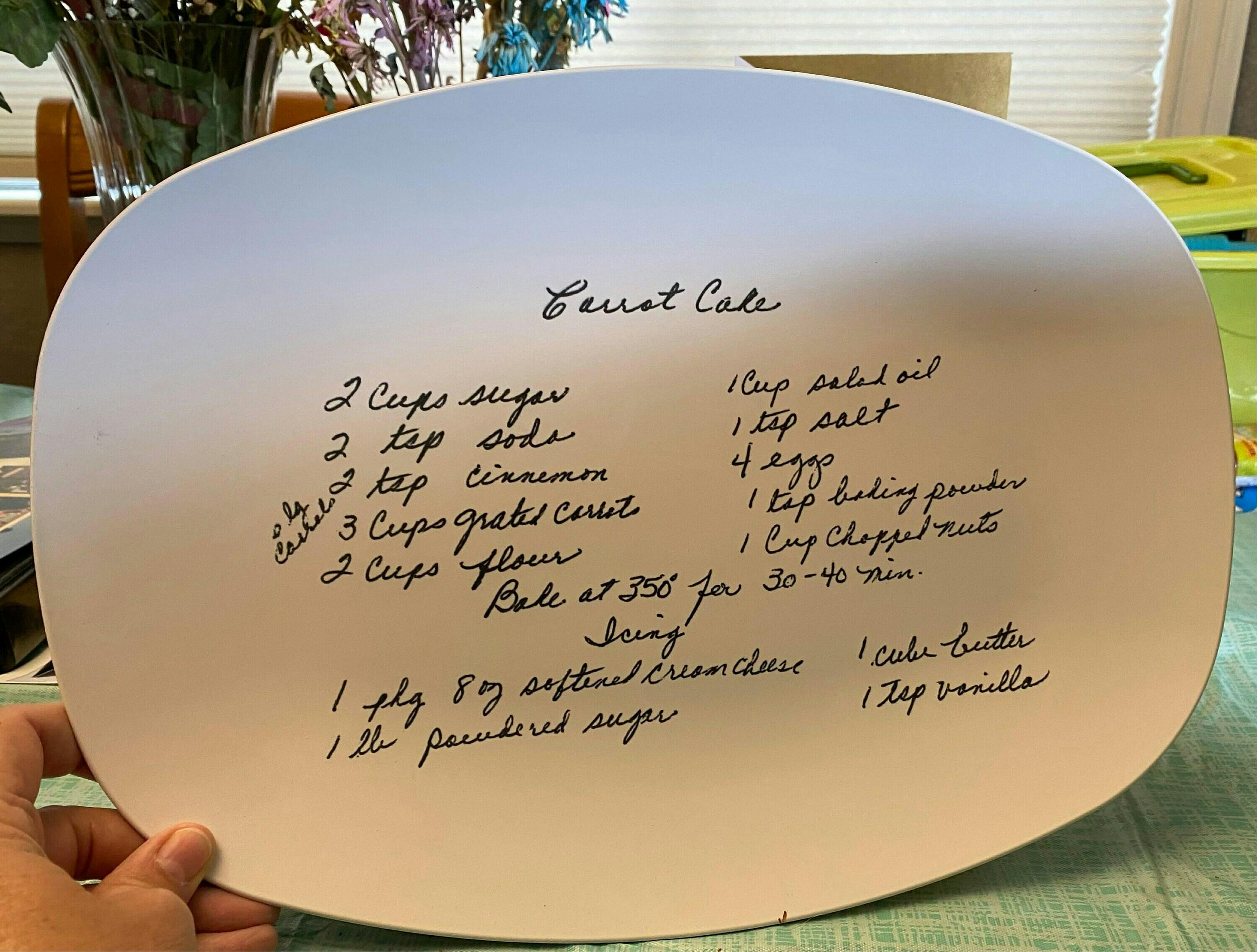 • If the recipe is very old, yellow, or faded, it may be hard to transfer the text. If this is the case, I have an alternate design that uses the image of the recipe on the platter without the background removal.
