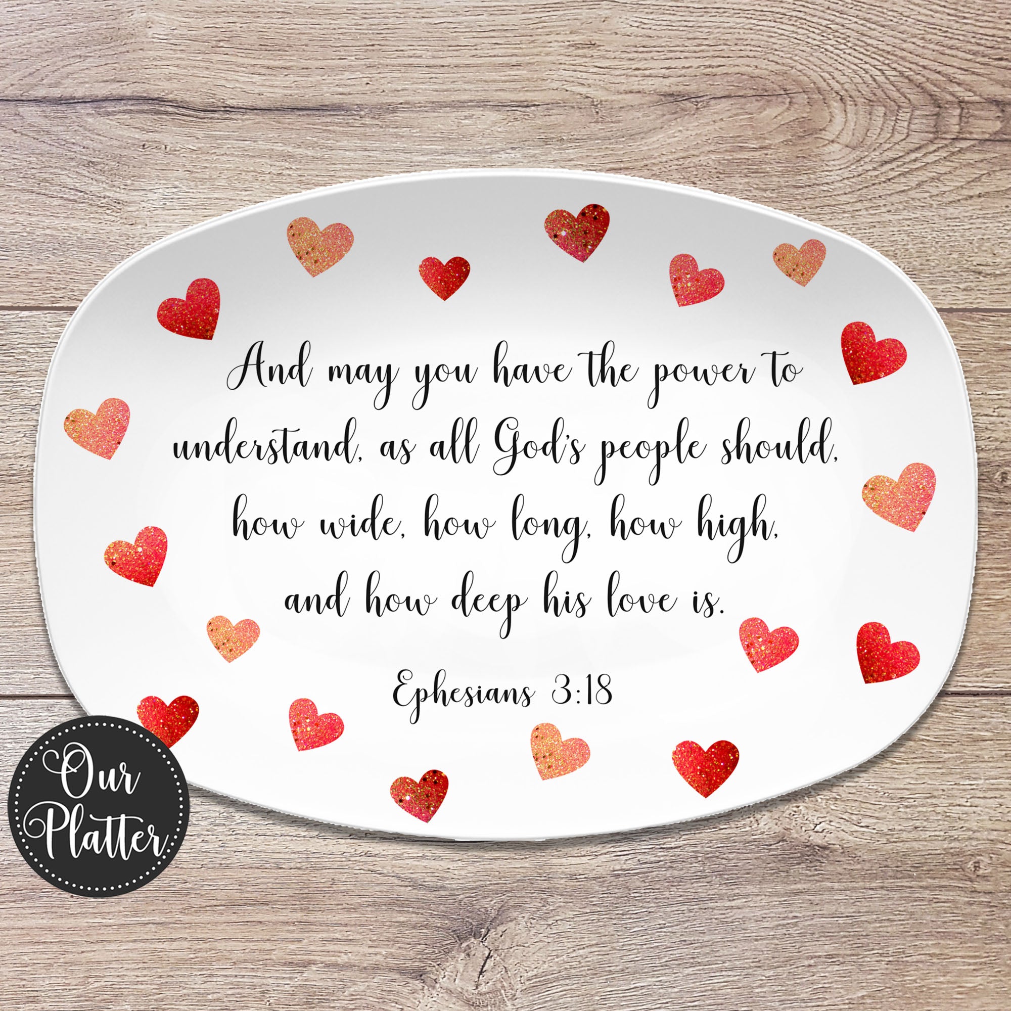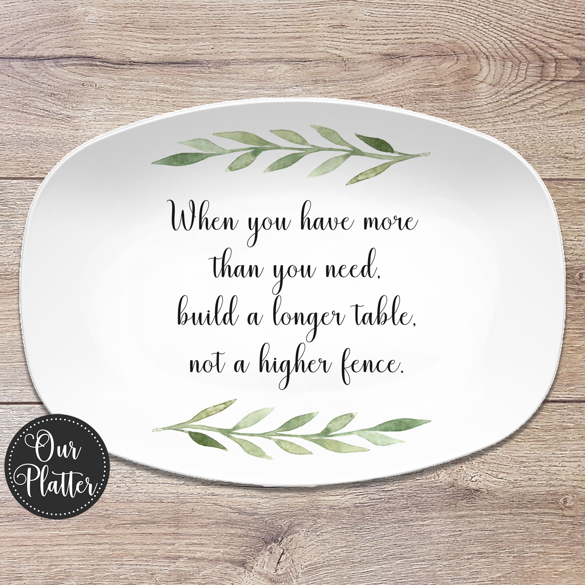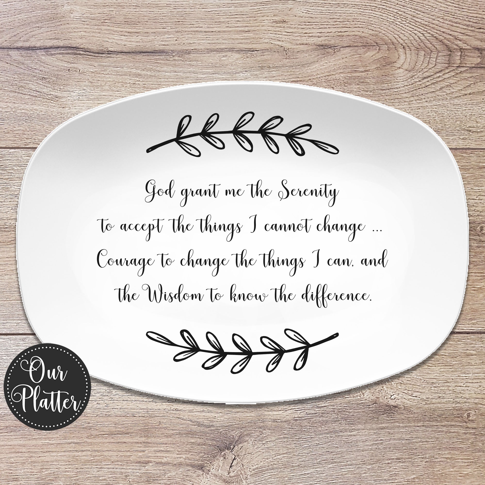 Design a special platter with your choice of quote, text, or bible verse. Our platters are beautiful serving pieces, as well as decor in your kitchen when not in use. They are made of a quality, durable plastic resin that is safer than melamine and contains no harmful chemicals!