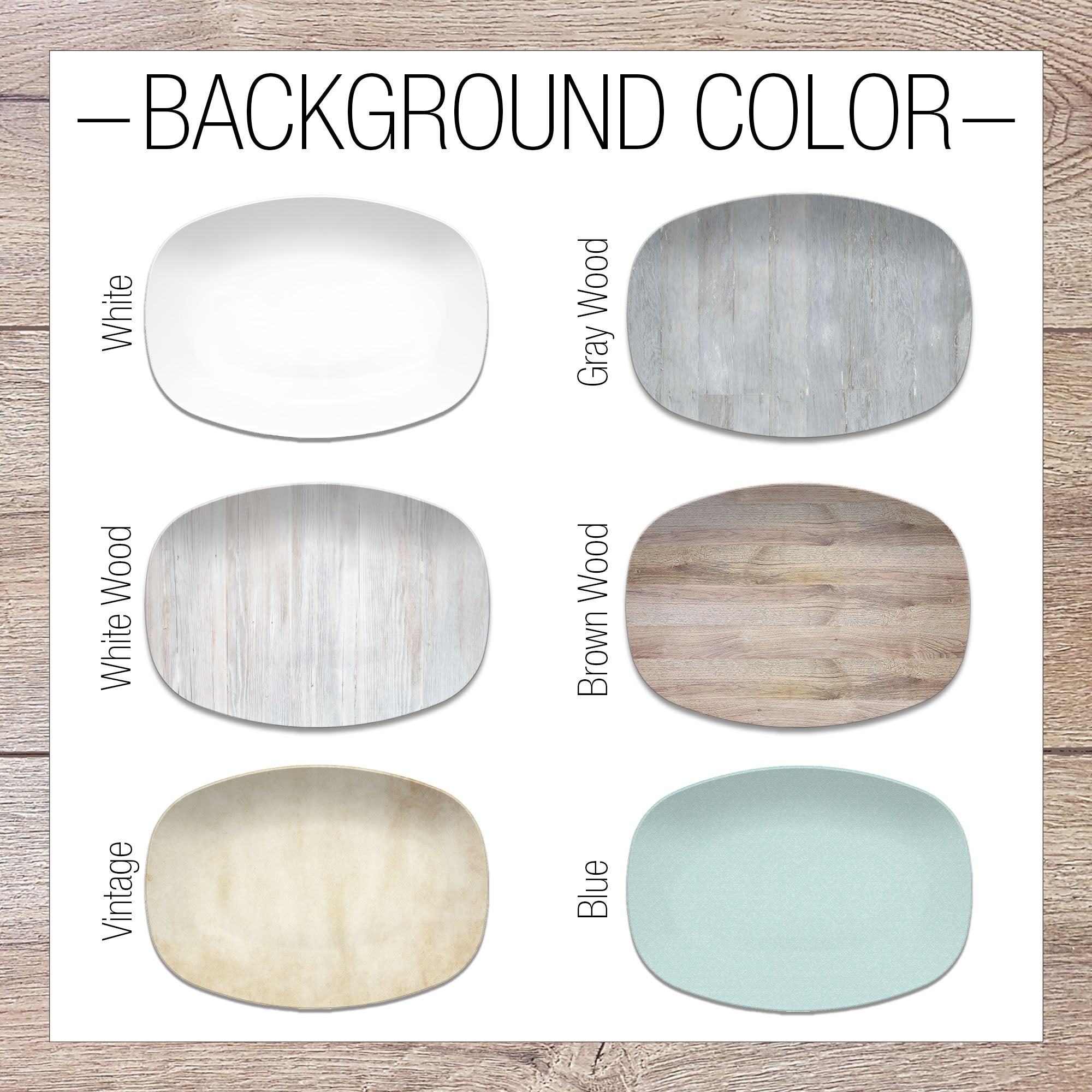 We use our design expertise for the best placement of text and graphics on each platter based on your individual selections. Actual colors may vary due to monitor settings. Small imperfections reflect the hand-made and unique nature of the printing process. Design elements such as wood, glitter, metallic, are all faux printed designs.