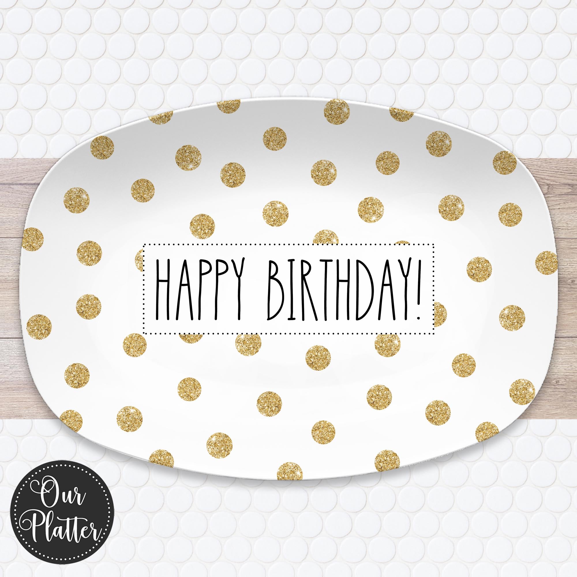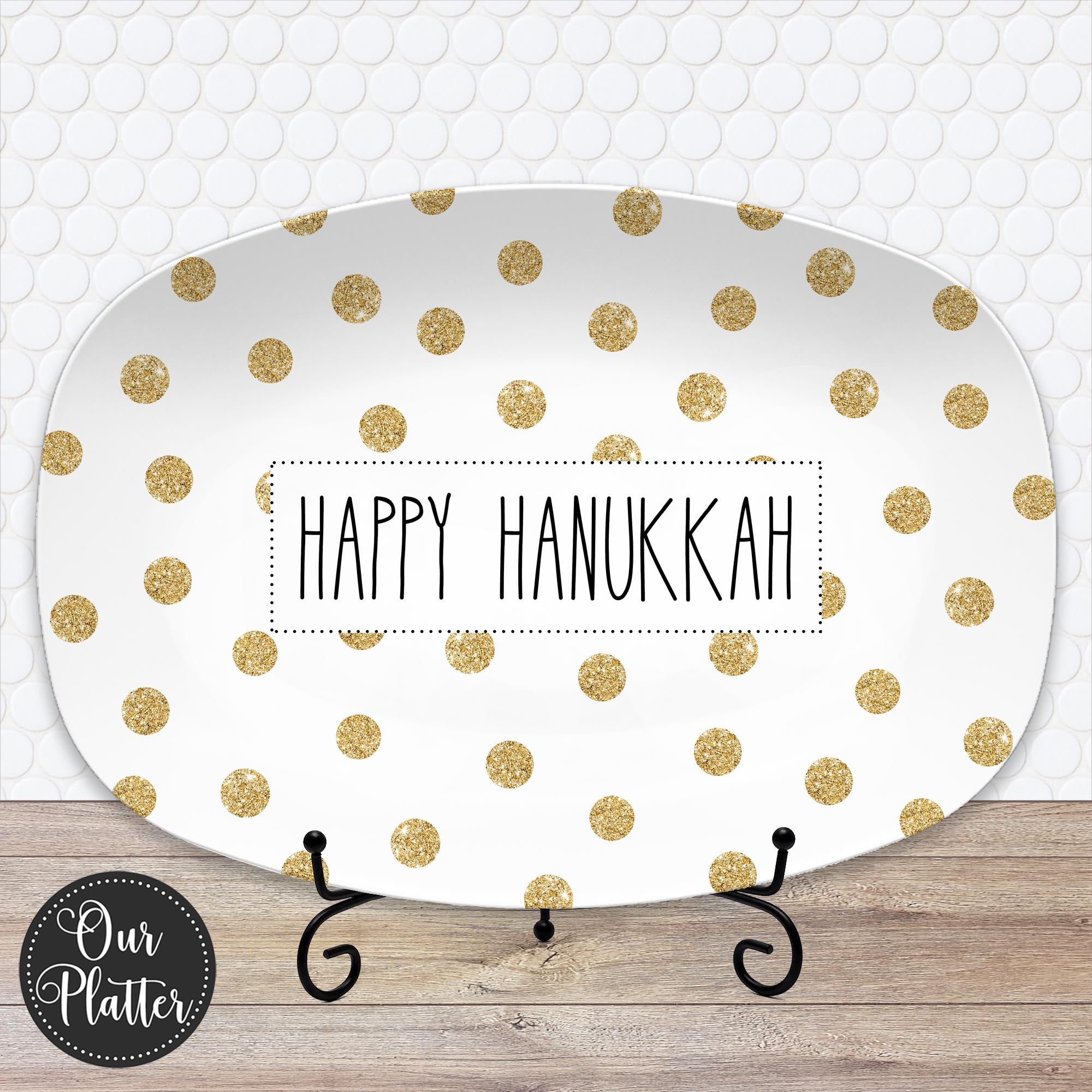 Gold Dots Personalized Holiday Platter | Christmas | Hanukkah | Birthday