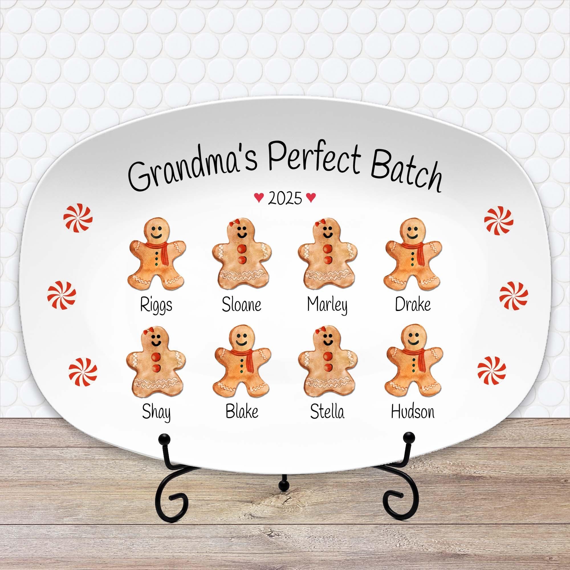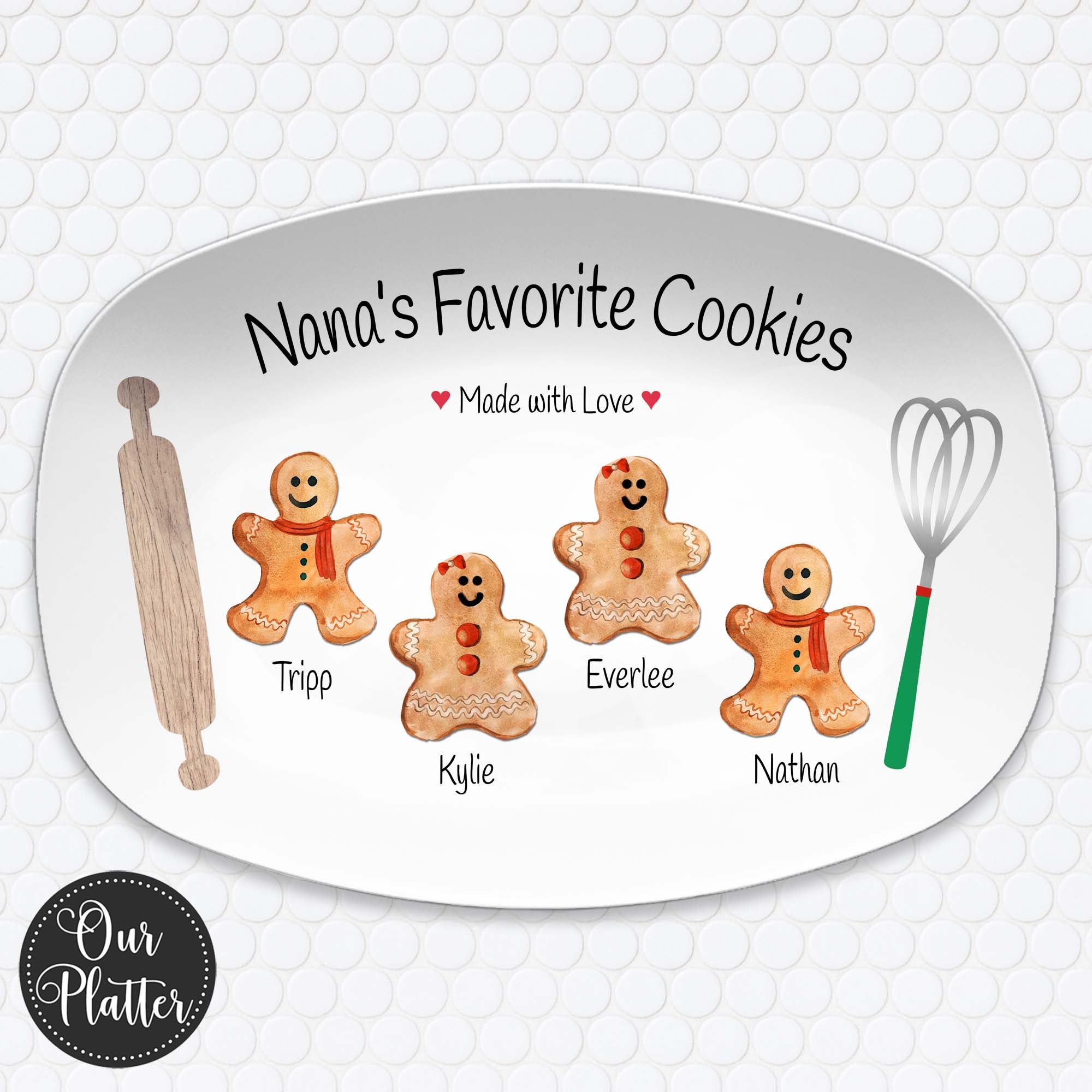 Celebrate the sweetest part of the holidays with this personalized gingerbread platter, featuring adorable cookie characters. Customize your platter to fit your family or loved one; whether it’s “Grandma’s Perfect Batch,” “Nana’s Favorite Cookies,” “Mom’s Cookie Crew,” or “The Johnson Family.” Add names beneath each cookie to make it extra special!